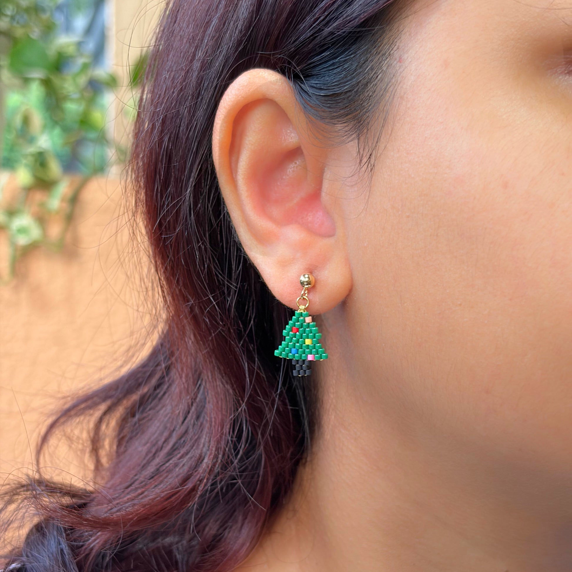 Each charm is lovingly handwoven from dozens of tiny Japanese glass beads, creating a detailed miniature tree complete with colourful ornaments and a star on top. Available as a necklace or a pair of earrings, it’s the perfect way to add a touch of festive sparkle to your holiday style.