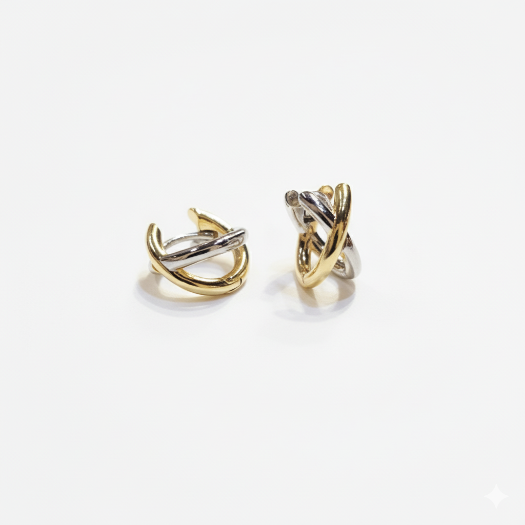 Meet the Duo Cross Huggies, a modern take on classic hoops, where gold and silver meet in perfect balance. The minimalist X-shaped design makes them versatile enough to pair with everything from your workwear staples to your weekend looks, while the mixed-metal finish adds subtle edge without being overpowering.