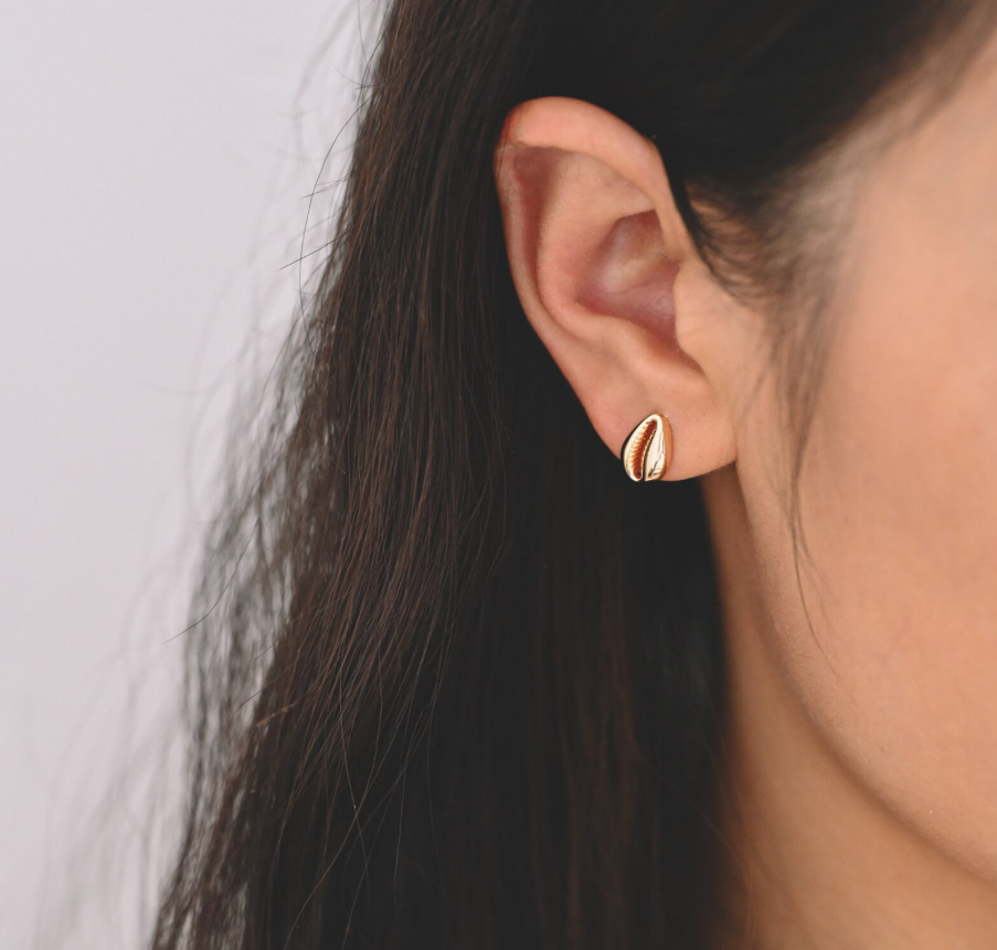 Turn up the coastal charm with these dazzling gold cowrie shell studs!