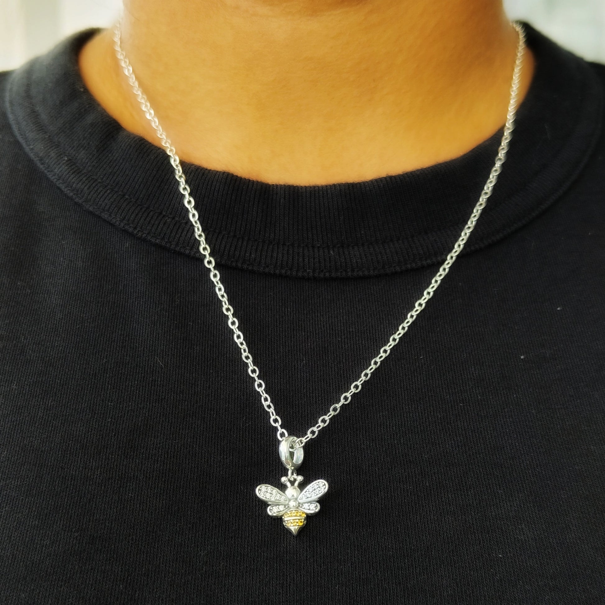 - Sterling silver honeybee charm with oxidized detailing