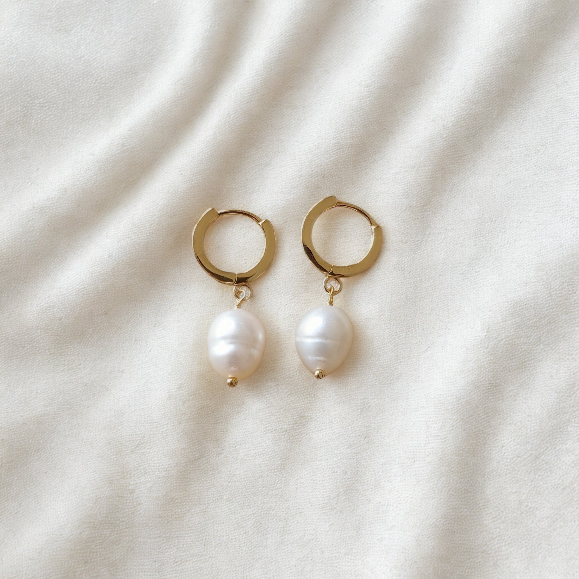 - Approximate size: 12 mm huggie with ~10 mm pearl (varies by piece)